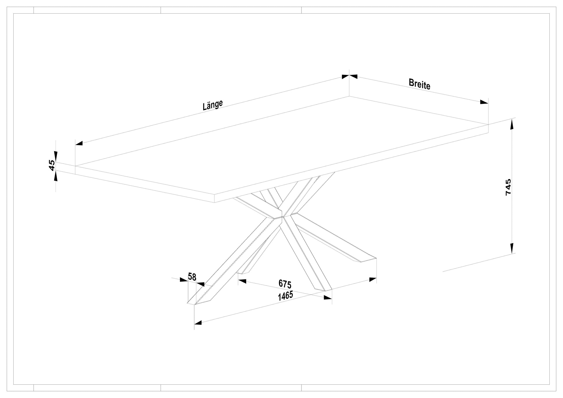 Das Spidergestell aus massivem Stahl, gefertigt von einem regionalen Partner, setzt ein markantes architektonisches Statement. Die gekreuzte Konstruktion verleiht dem Tisch Stabilität, Leichtigkeit und eine moderne Dynamik, die perfekt zum klaren Charakter der Premium Eiche passt.