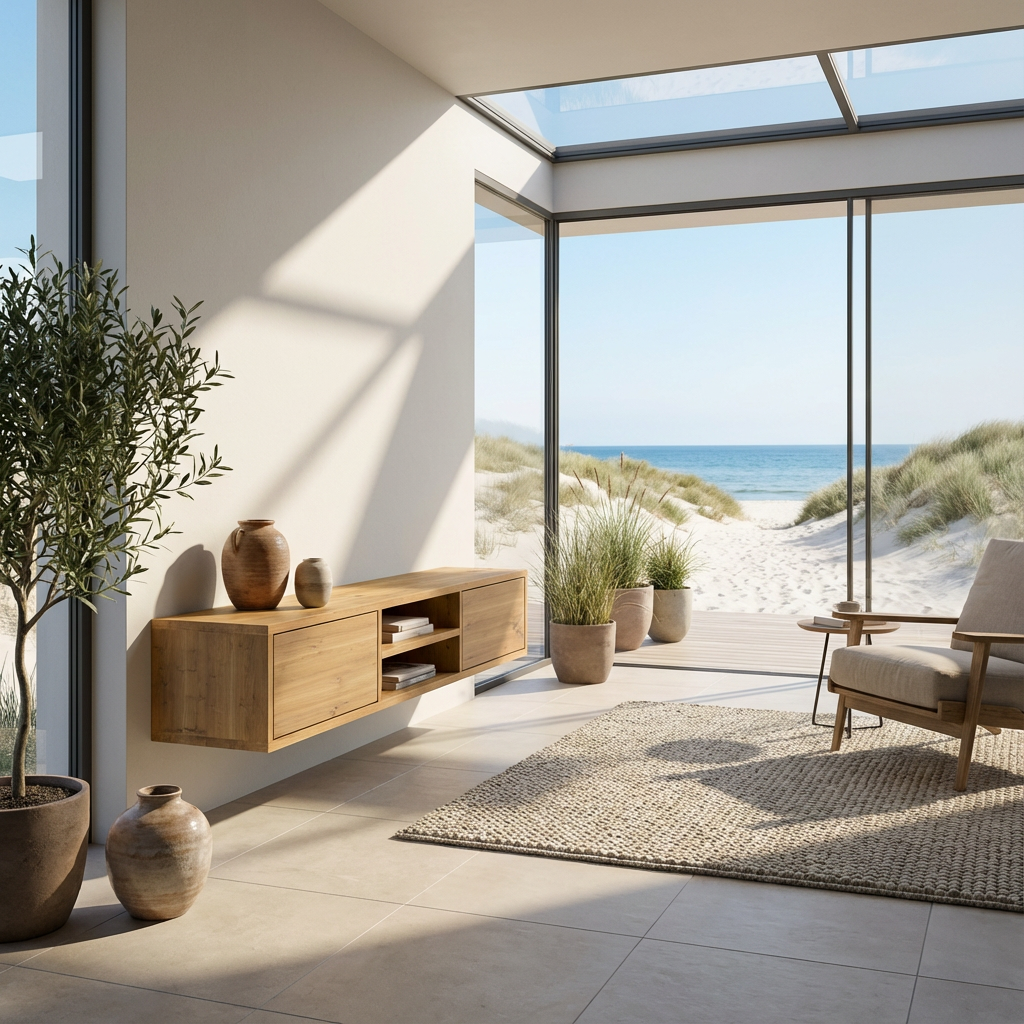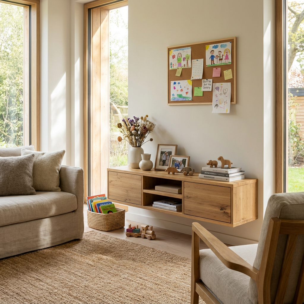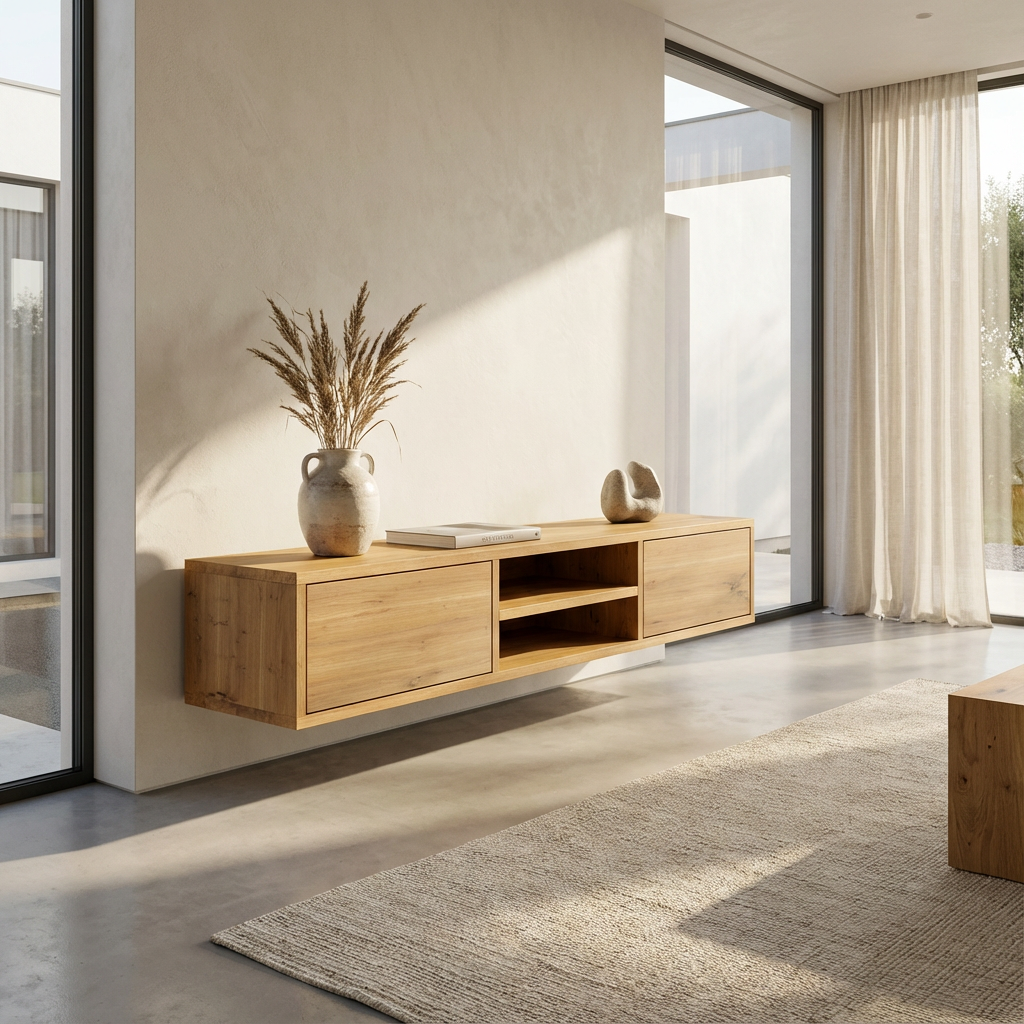 Lowboard aus massiver Eiche – leicht, modern, schwebend