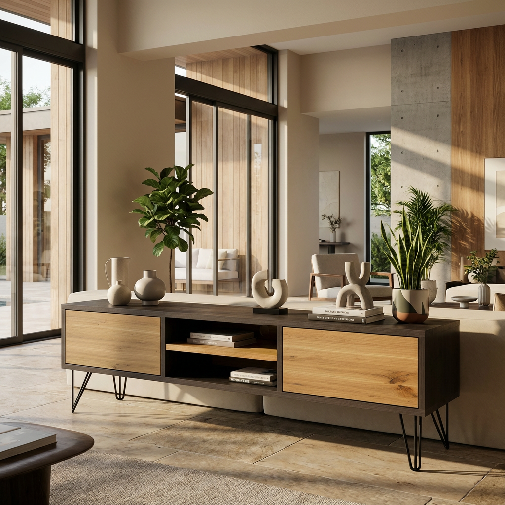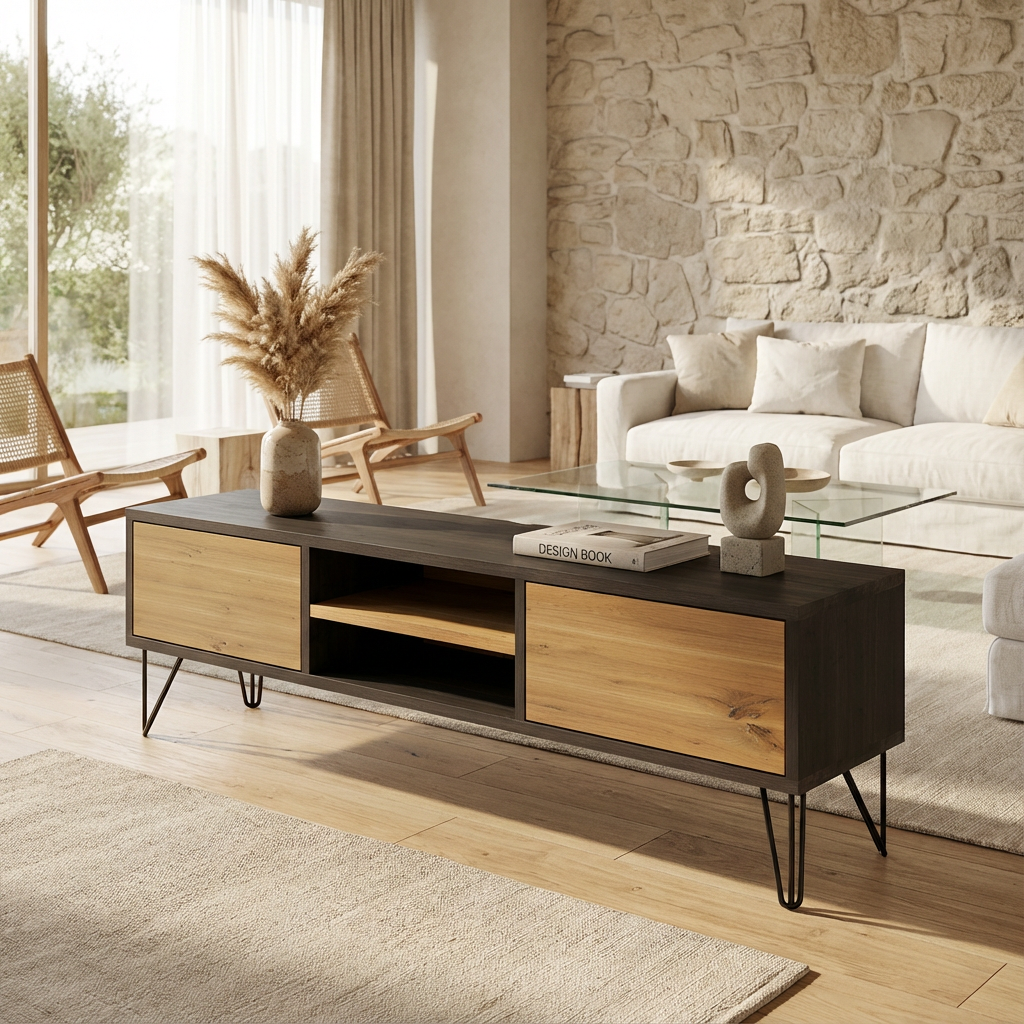 Dieses Lowboard vereint klare Linien, natürliche Materialien und handwerkliche Präzision.
