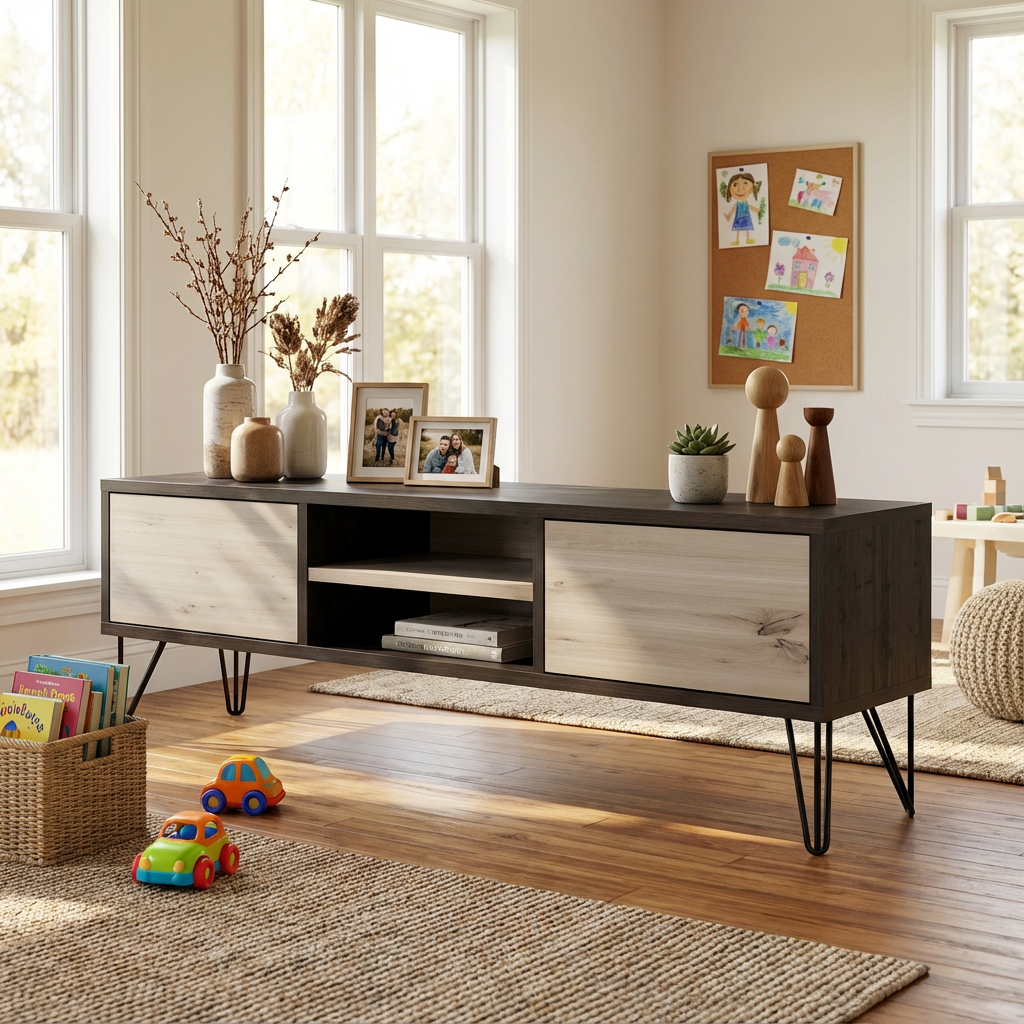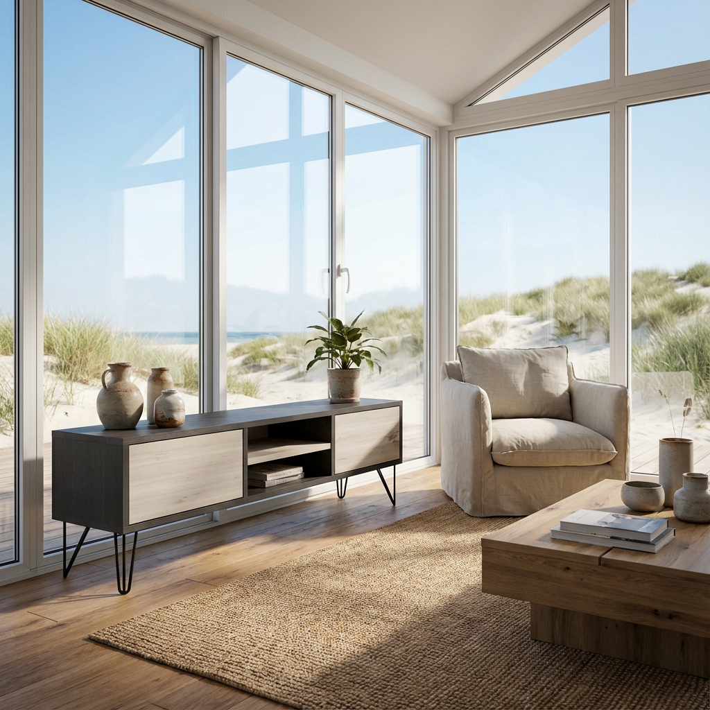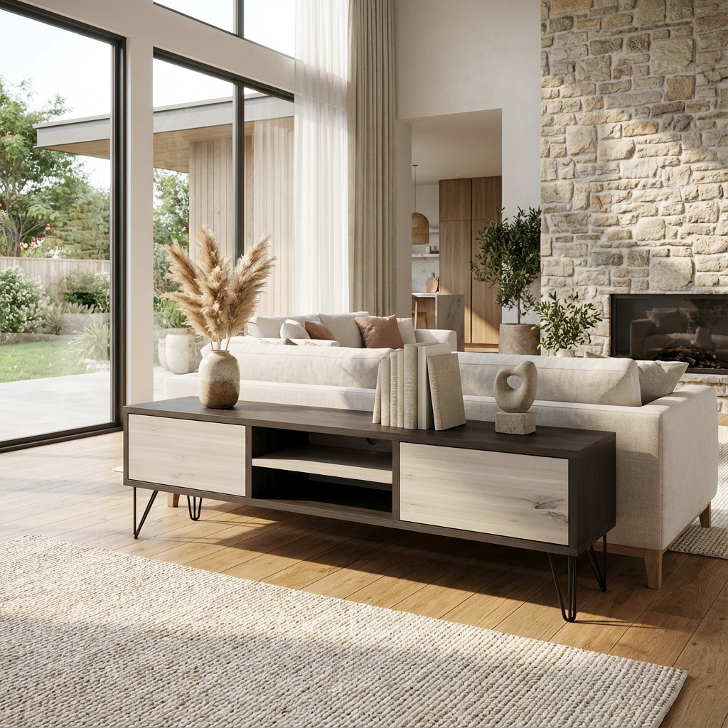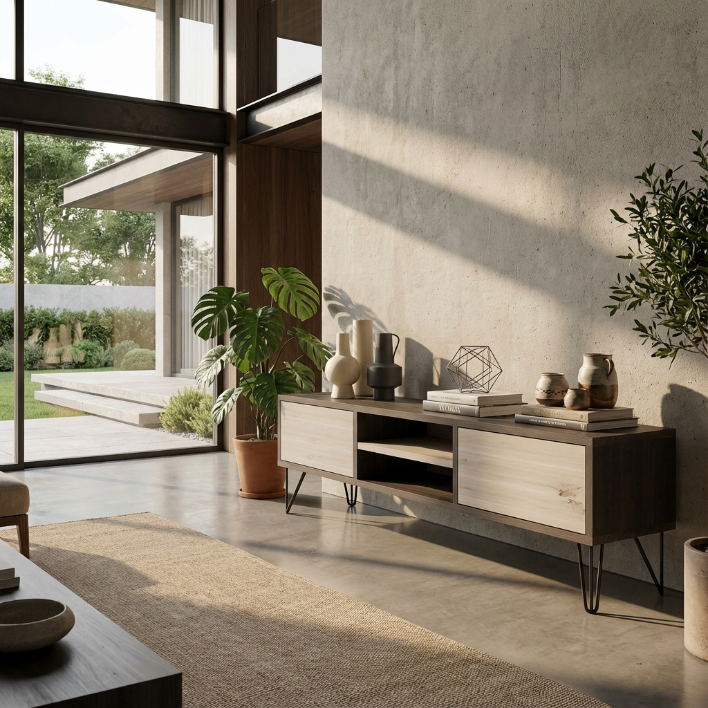 Dieses Lowboard vereint klare Linien, natürliche Materialien und handwerkliche Präzision.