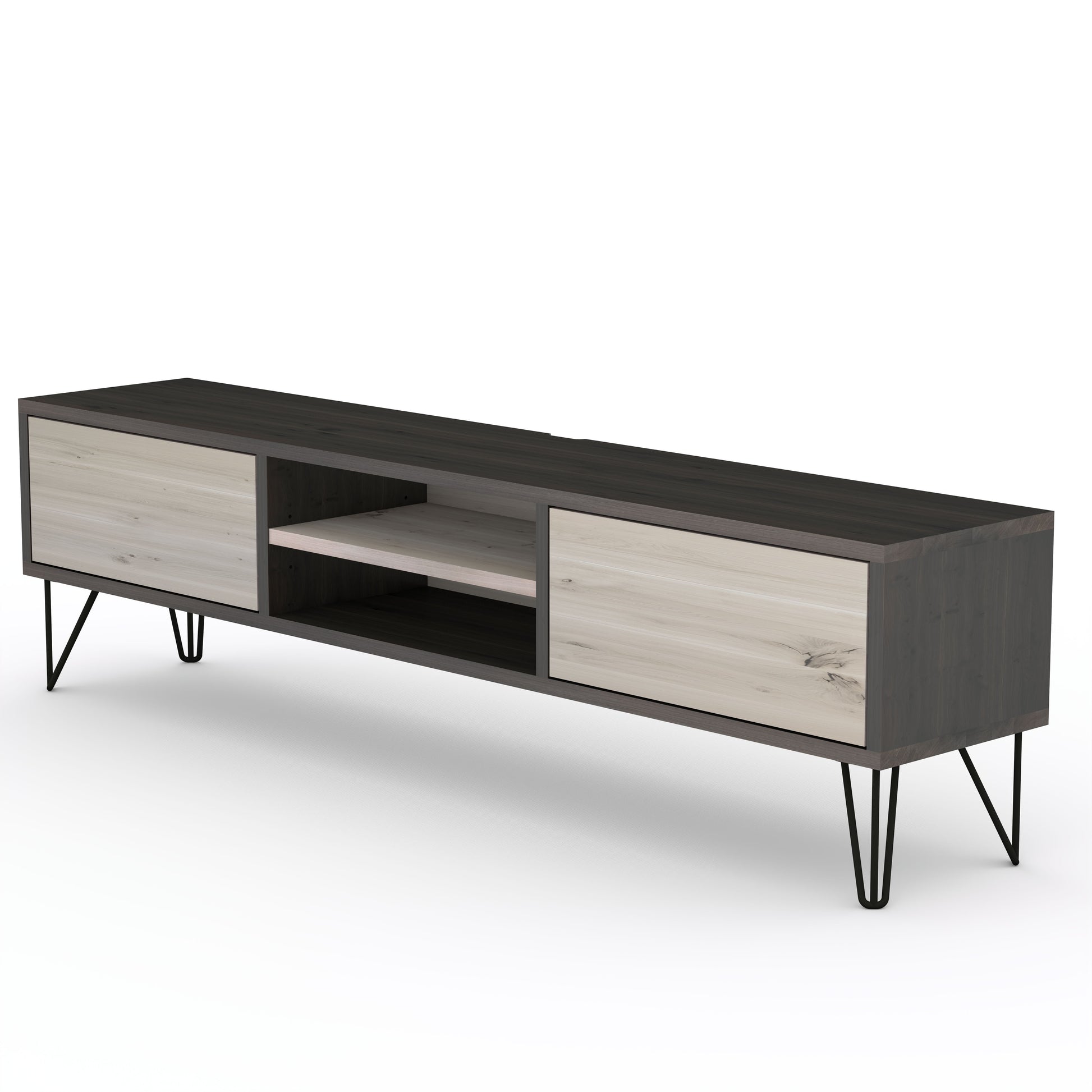 Lowboard Eiche Rustikal - Schwarz/weiß gewachst 150cm mit Stangenfuß