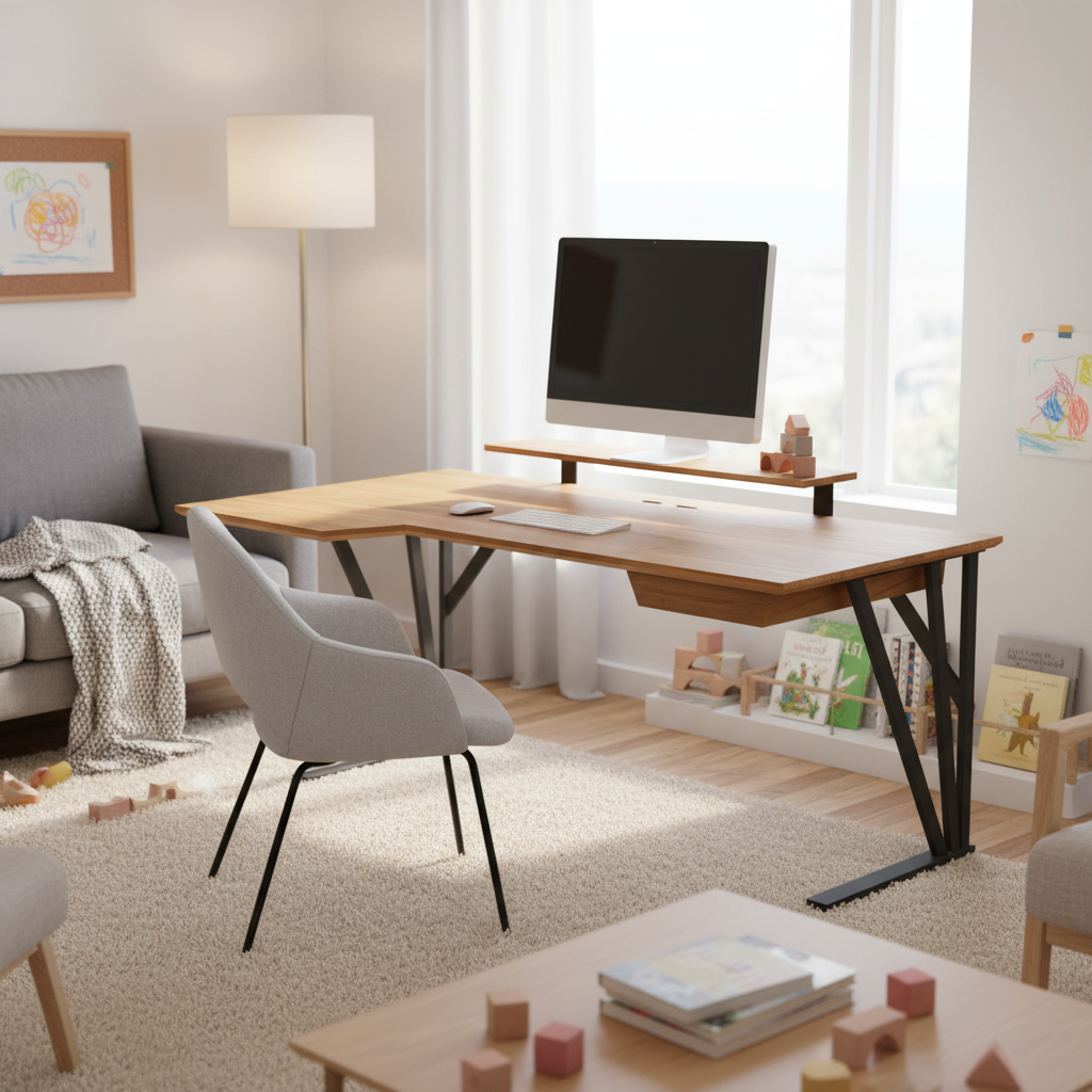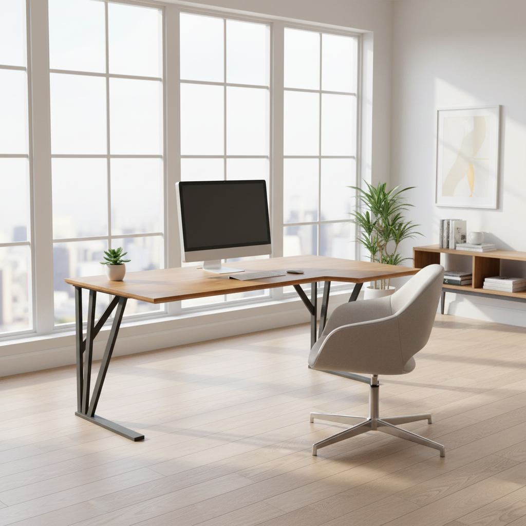 Ein langlebiger, ehrlicher Schreibtisch mit funktionaler Formensprache – gebaut für den Arbeitsalltag, gemacht für konzentriertes, gesundes Arbeiten.