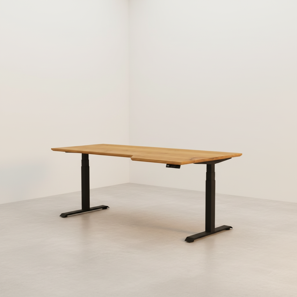 Massivholz Schreibtisch Eiche rustikal Natur geölt - elektrisch höhenverstellbar