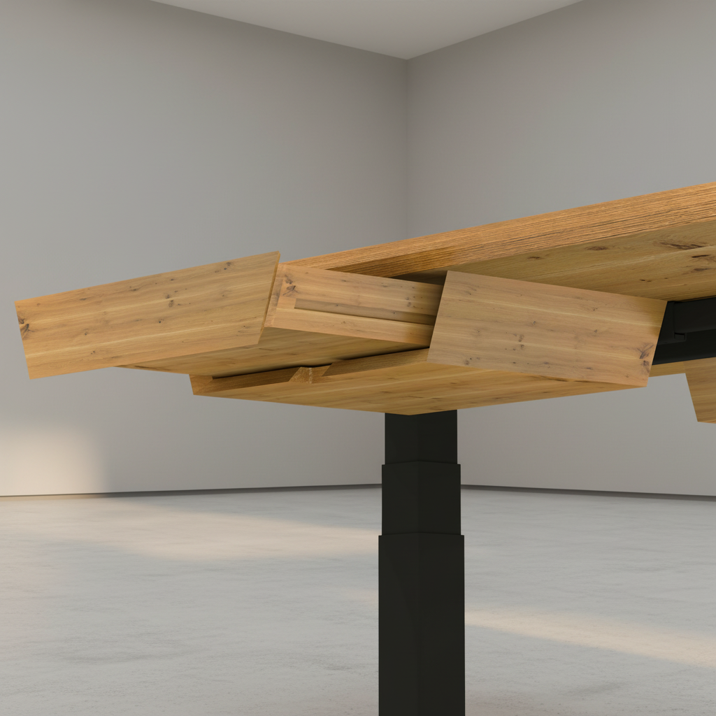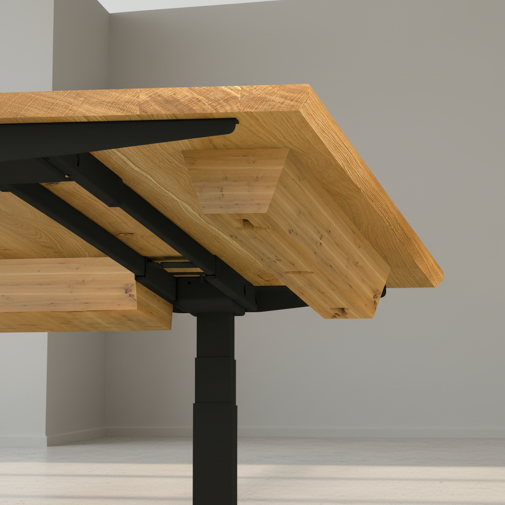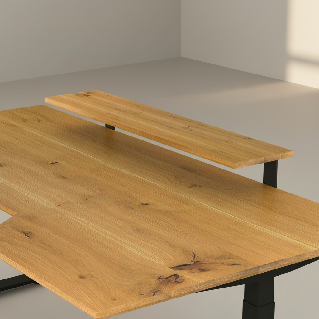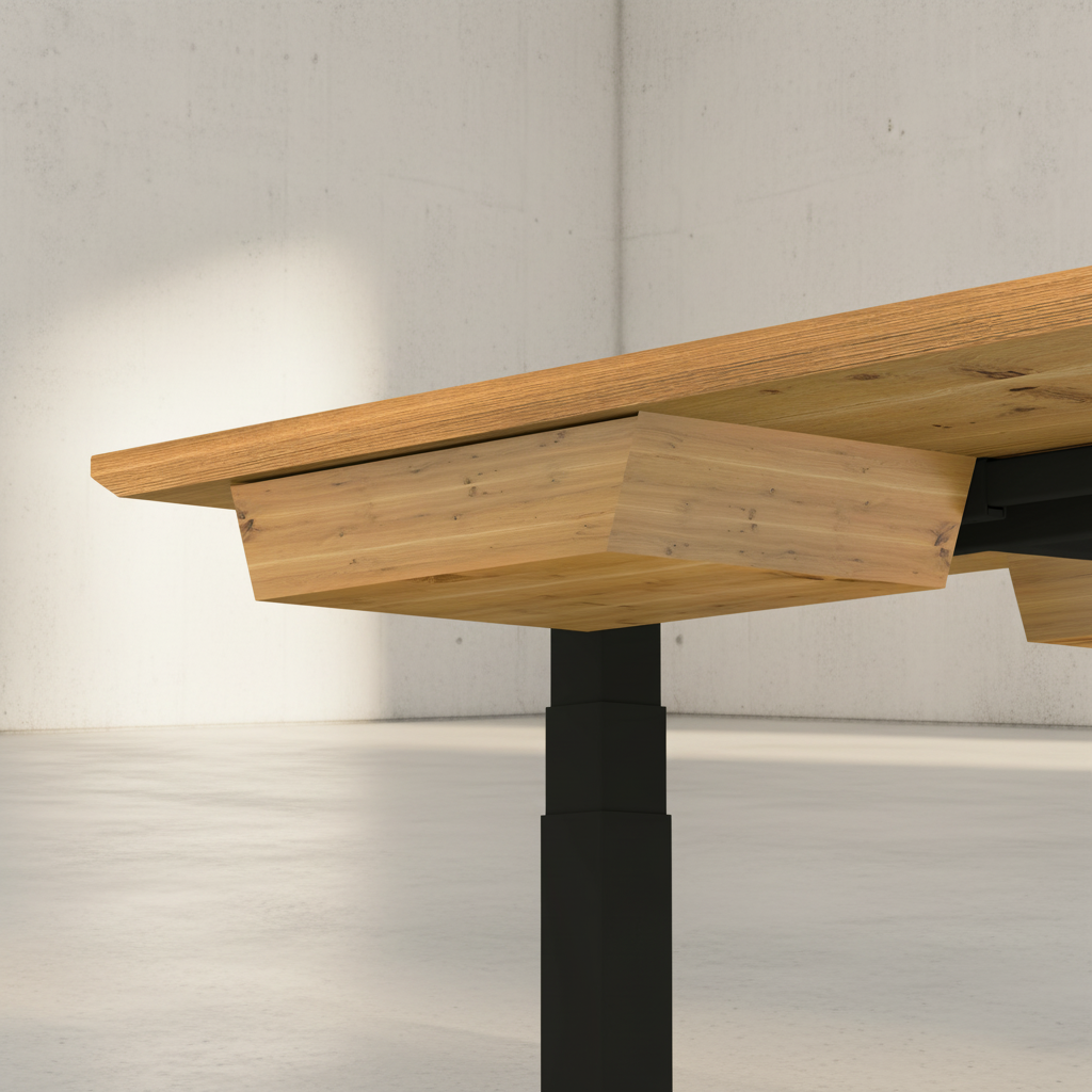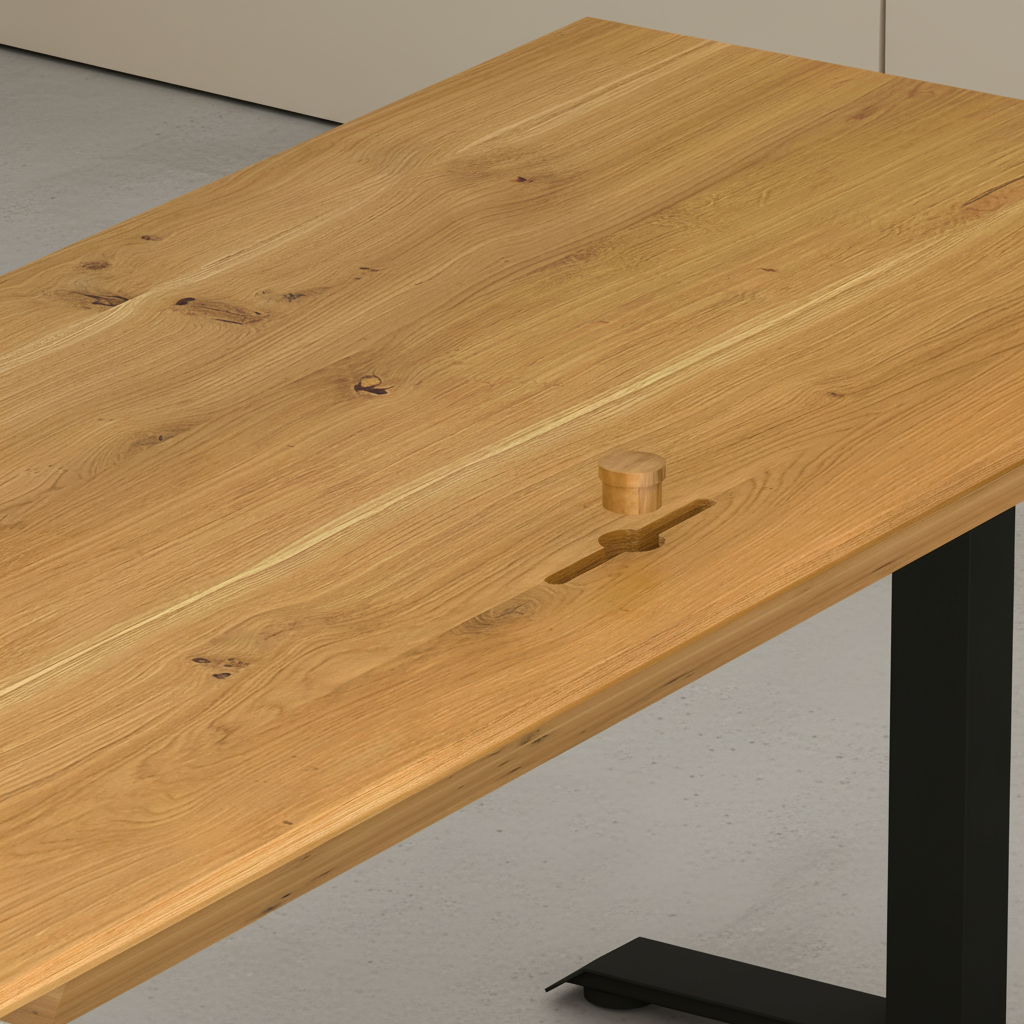 Ein langlebiger, ehrlicher Schreibtisch mit funktionaler Formensprache – gebaut für den Arbeitsalltag, gemacht für konzentriertes, gesundes Arbeiten.