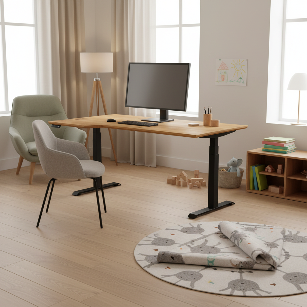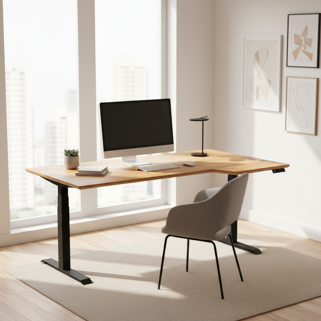 Das elektrisch höhenverstellbare Schreibtischgestell aus hochwertigsten Materialien, sorgt für maximale Stabilität und flexible Nutzung. Per Knopfdruck lässt sich die Arbeitshöhe stufenlos anpassen – für ergonomisches Arbeiten im Sitzen und Stehen. Die klare, reduzierte Form fügt sich harmonisch in Büro, Homeoffice oder Arbeitsraum ein und bietet großzügige Beinfreiheit.