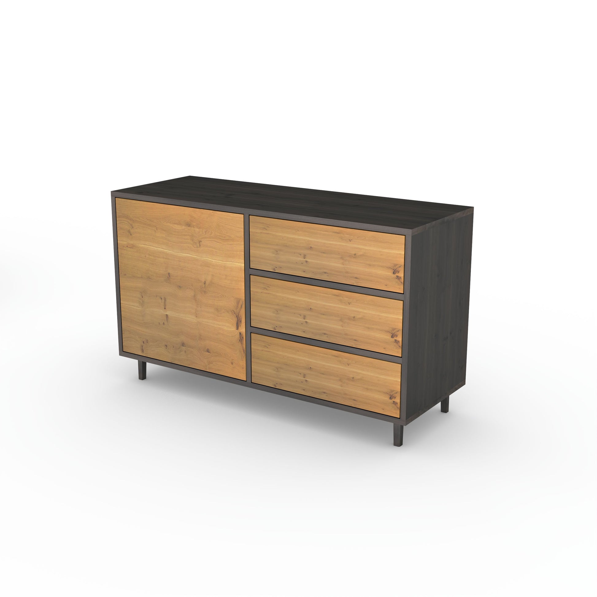 Sideboard Eiche Rustikal - Natur/Schwarz gewachst 120cm