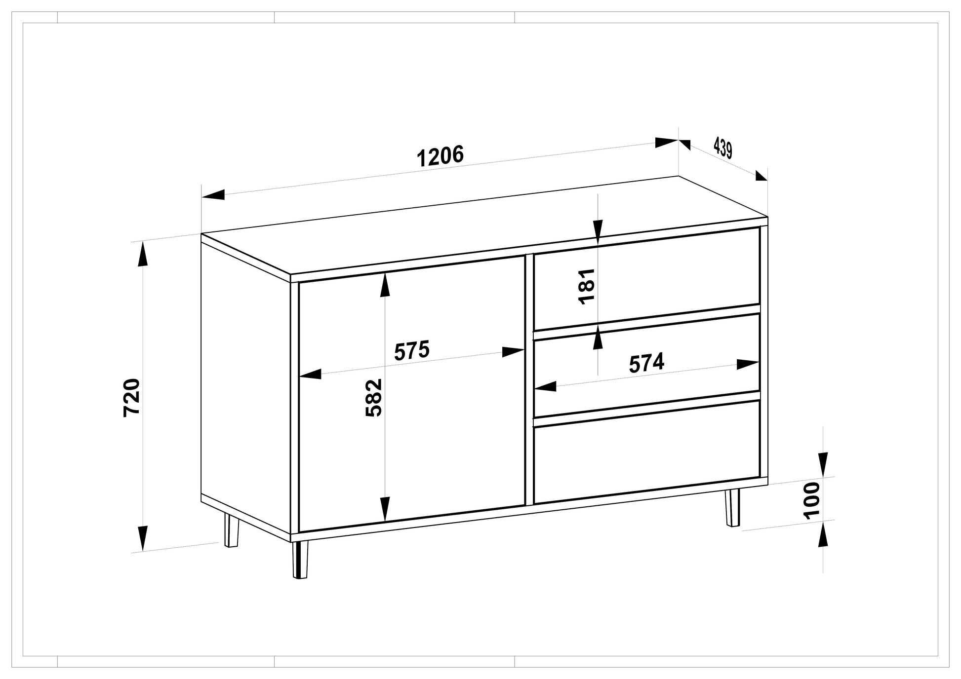 Das Sideboard hat die Maße 120cm x 49cm x 72cm (Länge/Breite/Höhe)